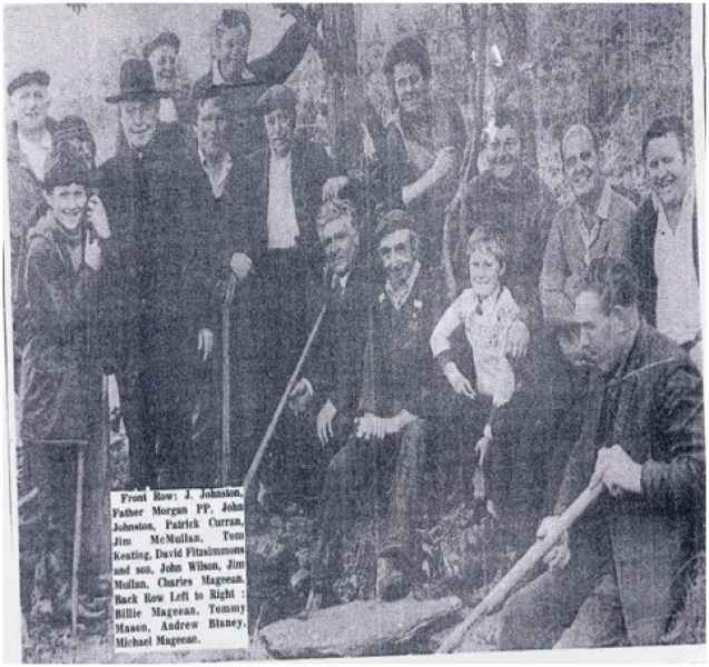On 2nd June 1976 a meeting of the parishioners of Portaferry was called by the parish priest, Fr David Morgan. By then the entrance to Templcowey had been closed but it had been decided to reopen an old entrance and even make it accessible for invalids. With grateful thanks land was given to the Parish by local farmer John Johnston and a new concrete road with car park and steps down to the Holy Wells was to be provided. The whole enterprise was widely reported in the Down Recorder and Newtownards Chronicle of July and November 1976. On a beautiful Sunday (2nd July 1978) thousands attended the first pilgrimage after the reconstruction initiated by Fr David Morgan. A plaque commerating the re-opening can be seen near the altar. Since then, on the Sunday closest to the feast of St Peter and St Paul a pilgrimage to Templecowey has taken place.